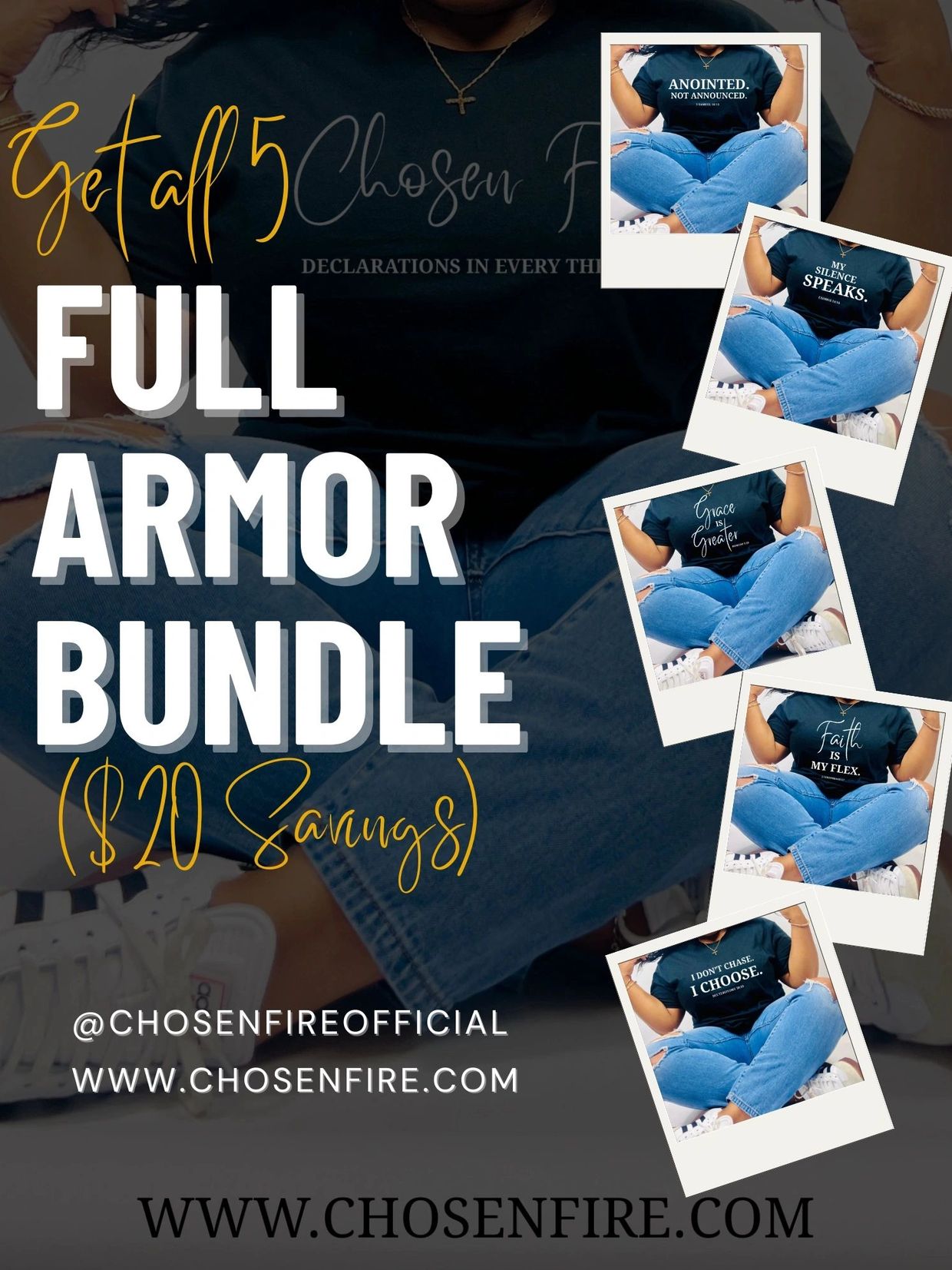 Go all in with the Full Armor Bundle. Collect all 5 of our bold, faith-filled designs at once and complete the full set.