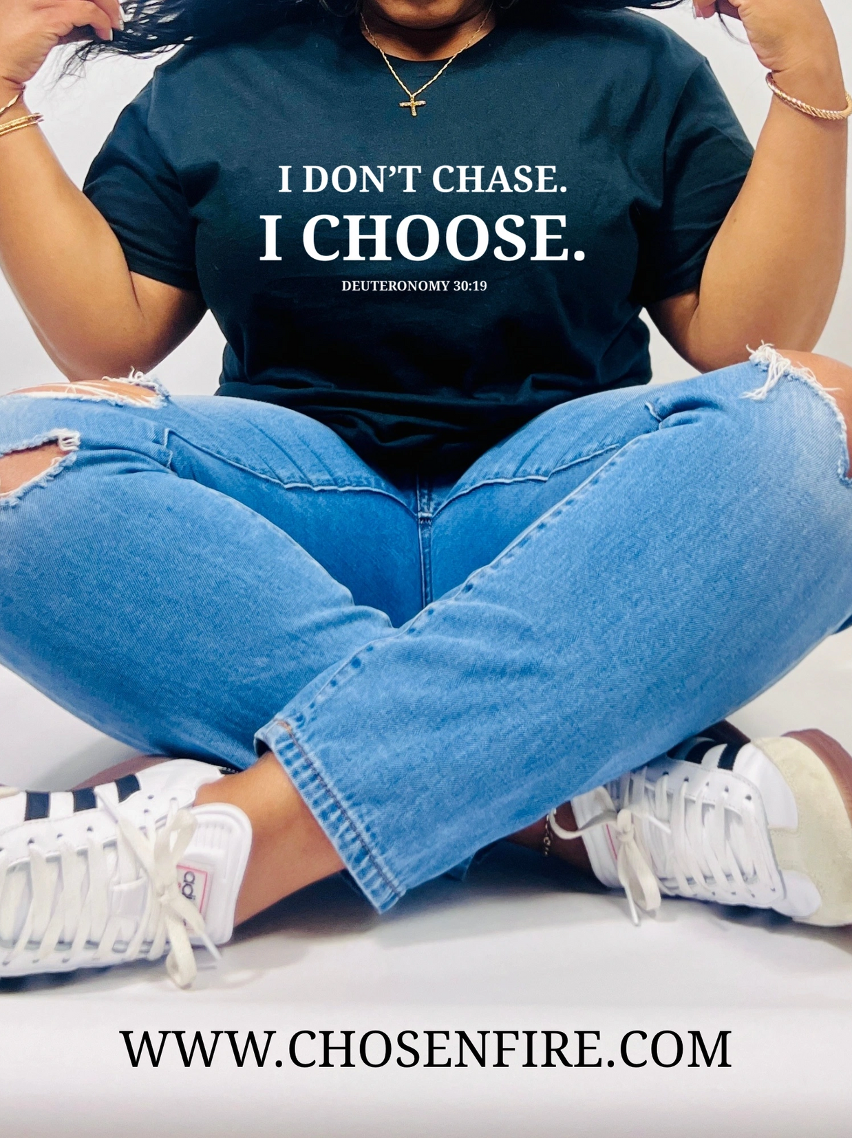 You’re not chasing what’s temporary—you’re choosing life, purpose, and God’s best. Rooted in Deuteronomy 30:19, this tee reminds you that blessings flow from wise choices. It’s a declaration of self-worth, vision, and divine direction.