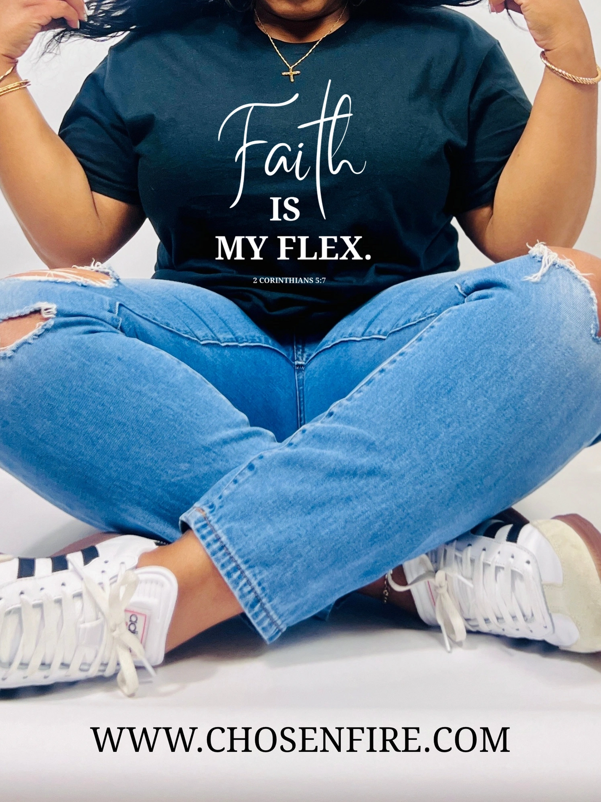 This tee declares strength that doesn’t come from sight, but from faith. Inspired by 2 Corinthians 5:7, it’s a bold reminder that your true flex is walking in trust, not appearances. Wear it as a testimony that faith is greater than fear.